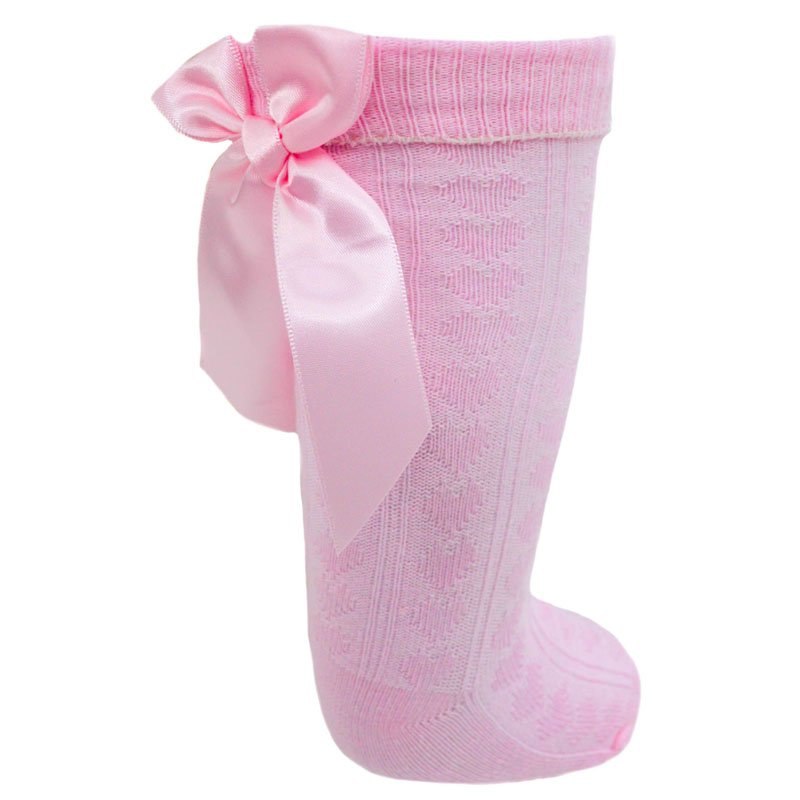 גרב ברך פפיון סטן אחורי - ורוד