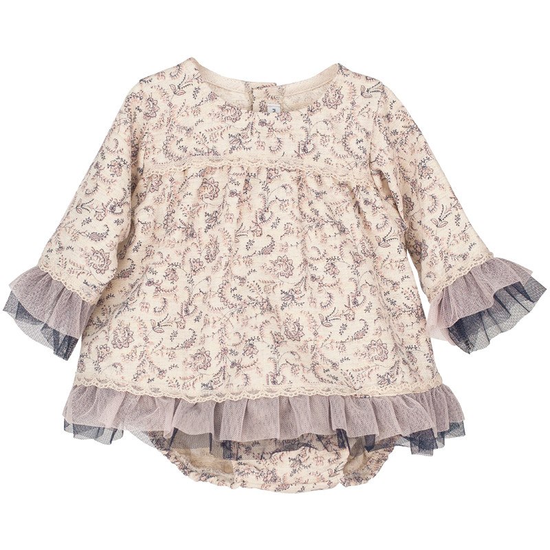 סט שמלה 2 חלקים - בגווני בז' וורוד עם טול תוצרת ספרד