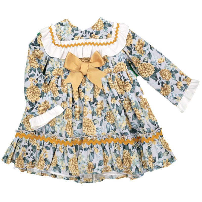 שמלה - פרחונית בגווני חרדל וירוק תוצרת ספרד