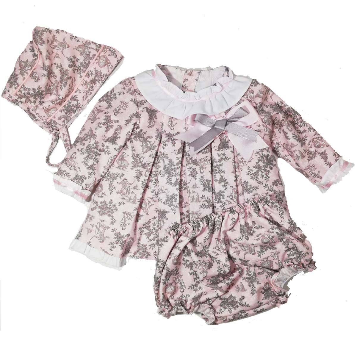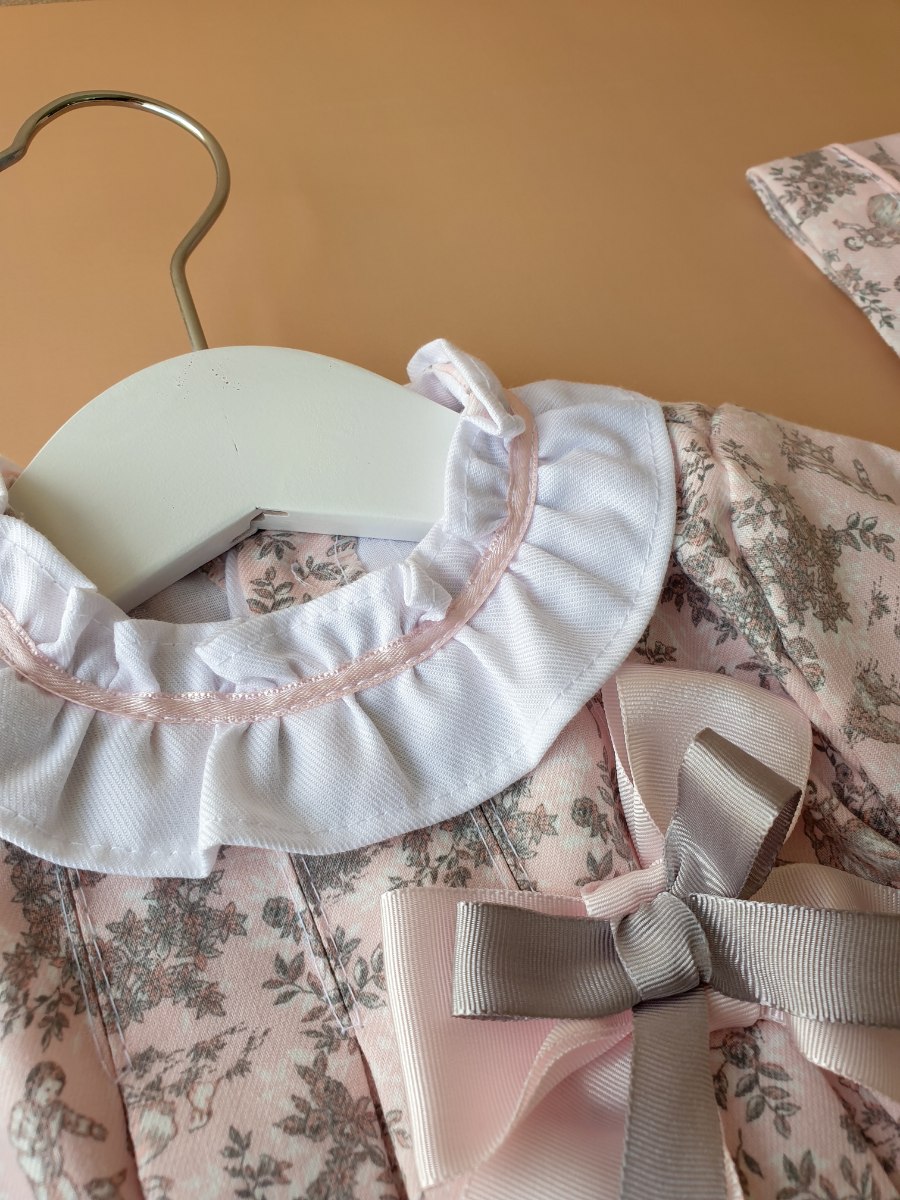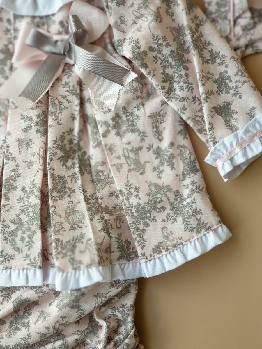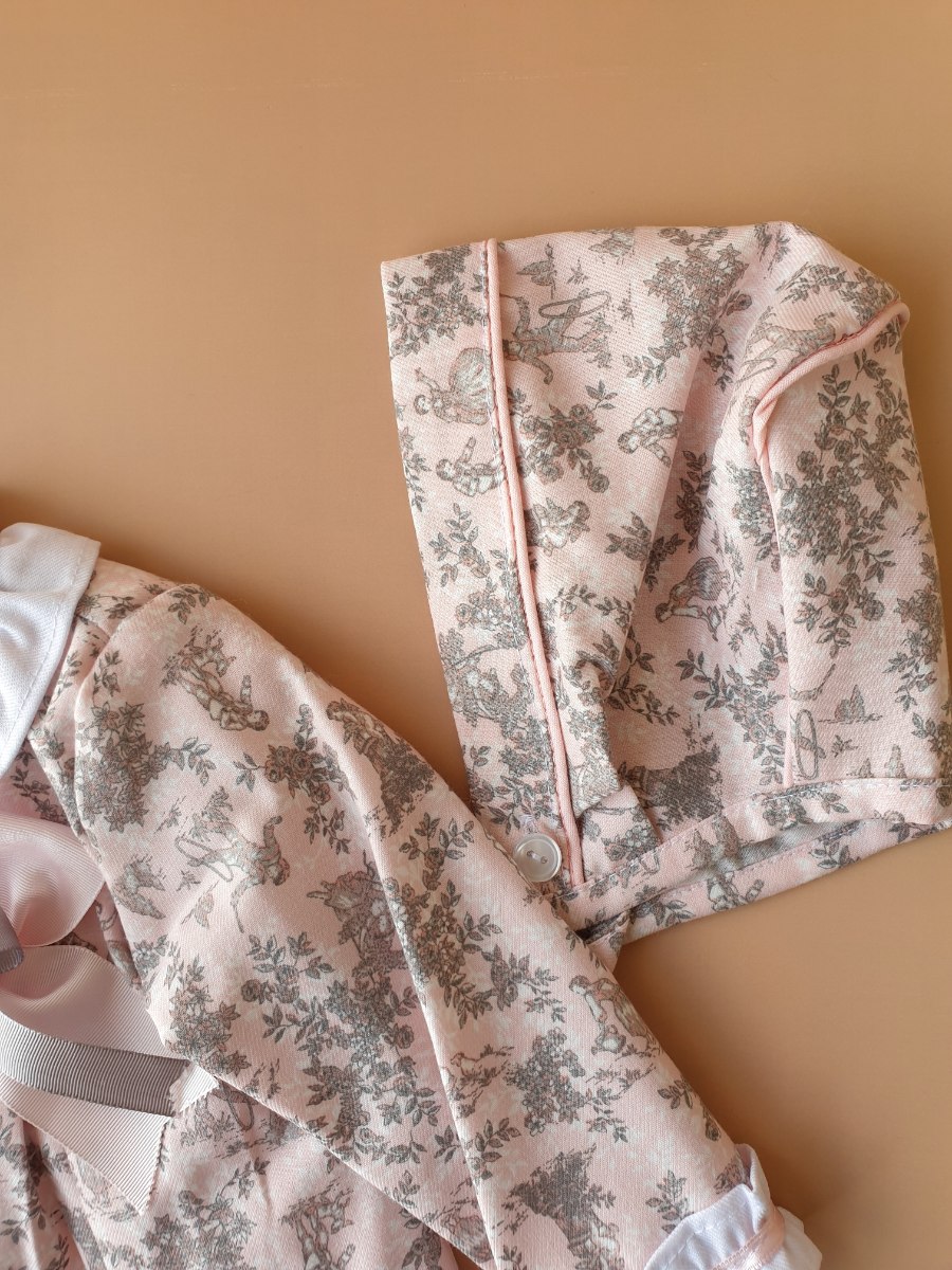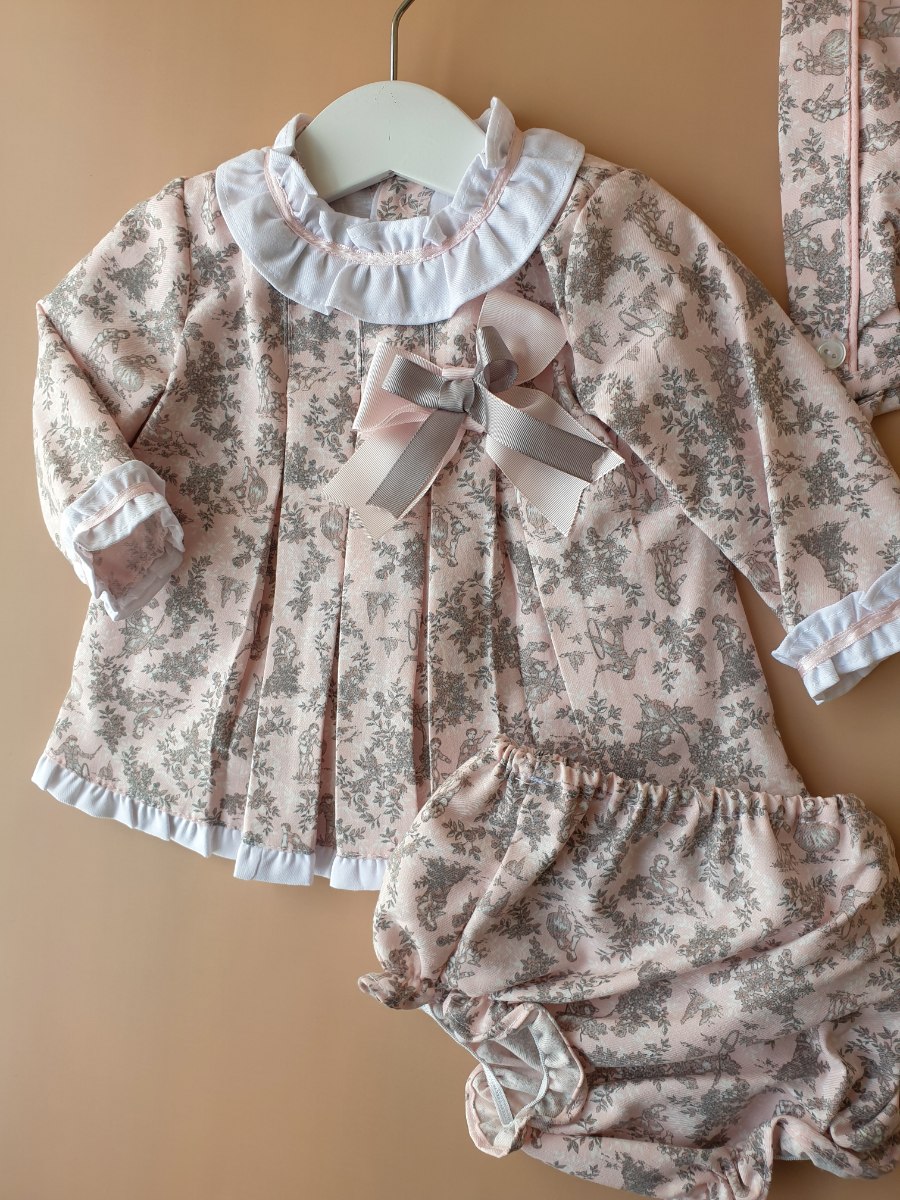 סט שמלה 3 חלקים - פרחונית בגווני ורוד תוצרת ספרד
