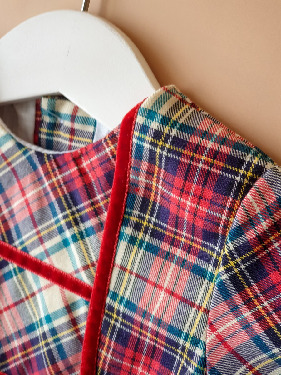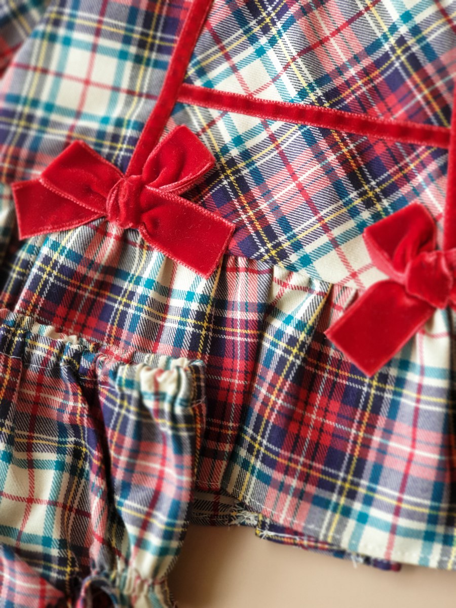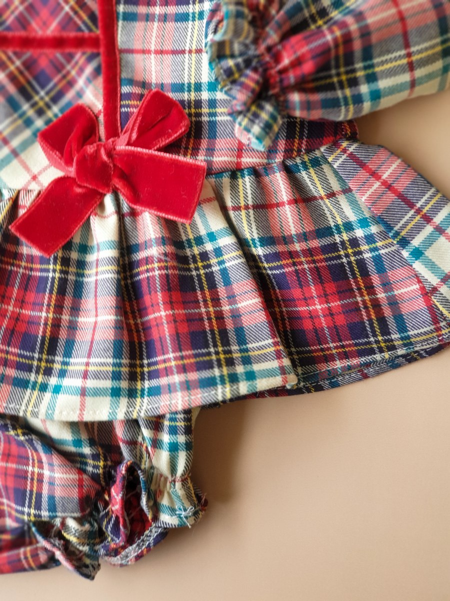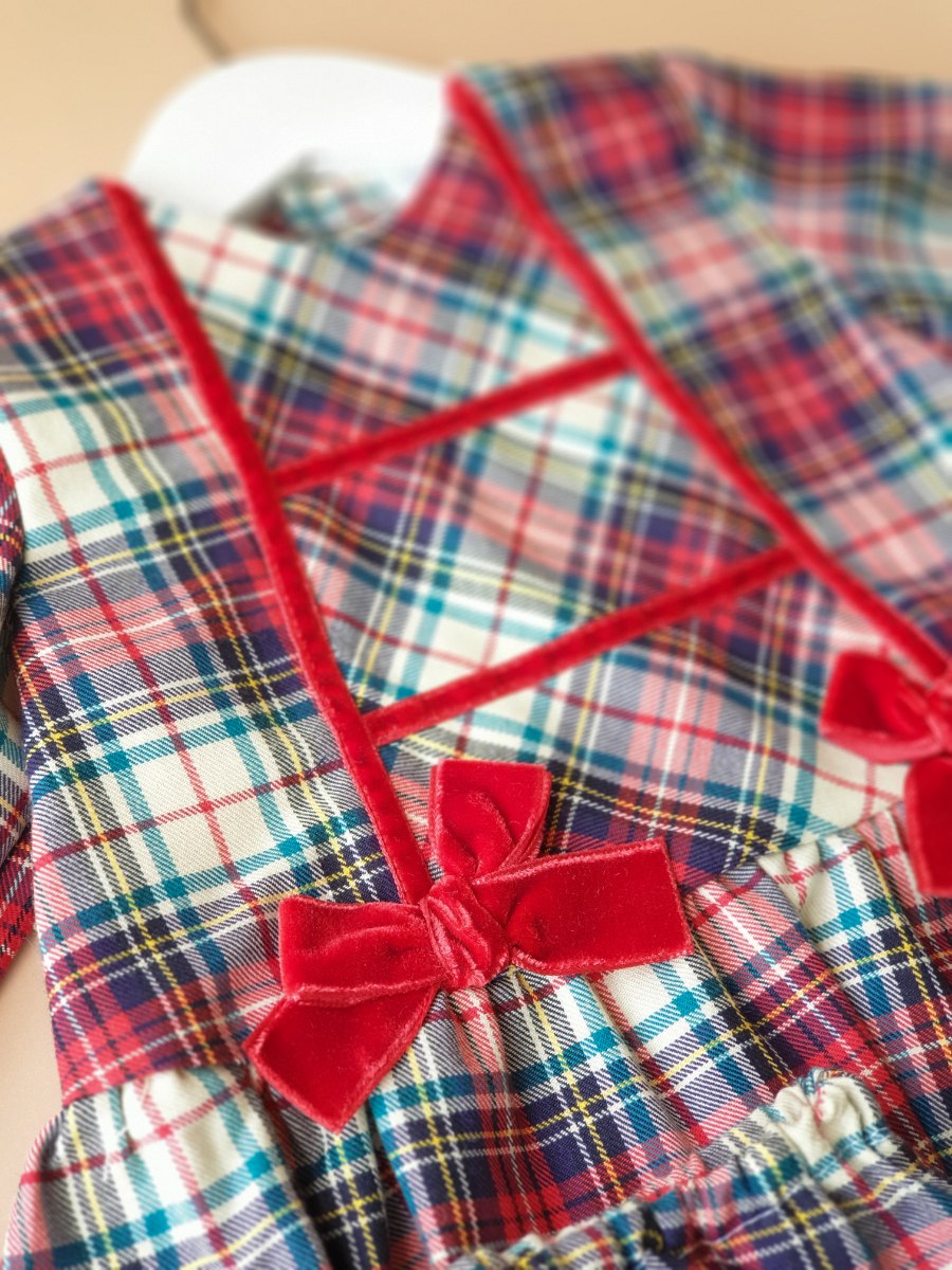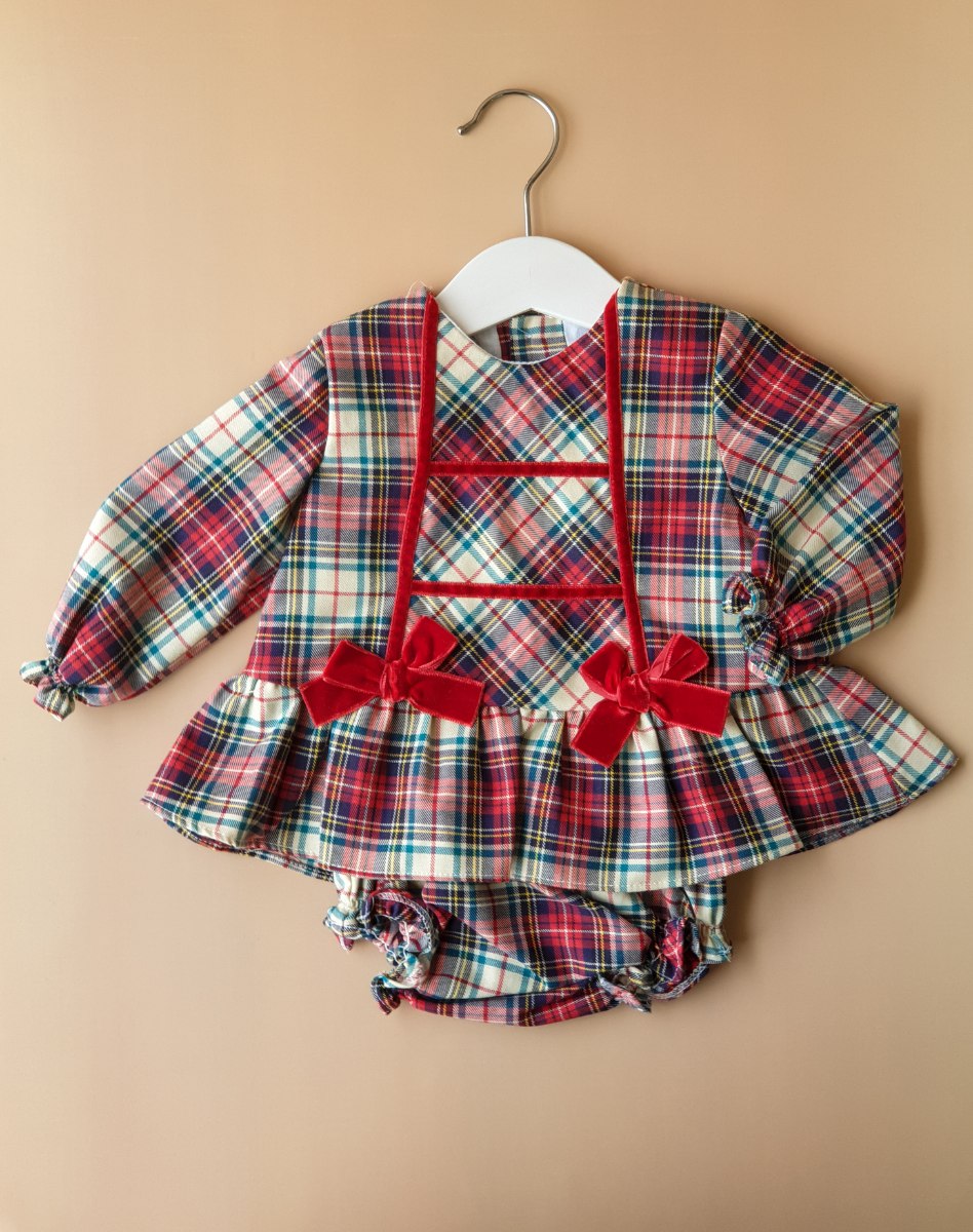 סט שמלה 2 חלקים - משבצות בגווני אדום וירוק תוצרת ספרד